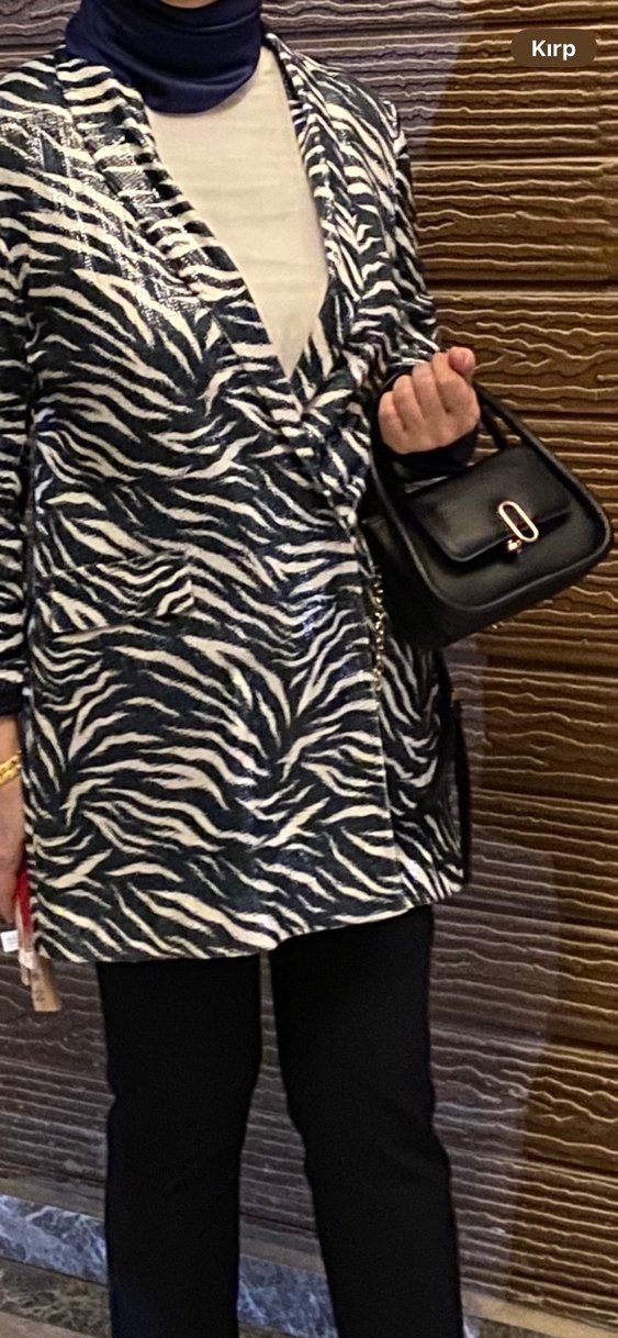 Zebra desenli, Notlu yaka, uzun kollu payetli ghisa