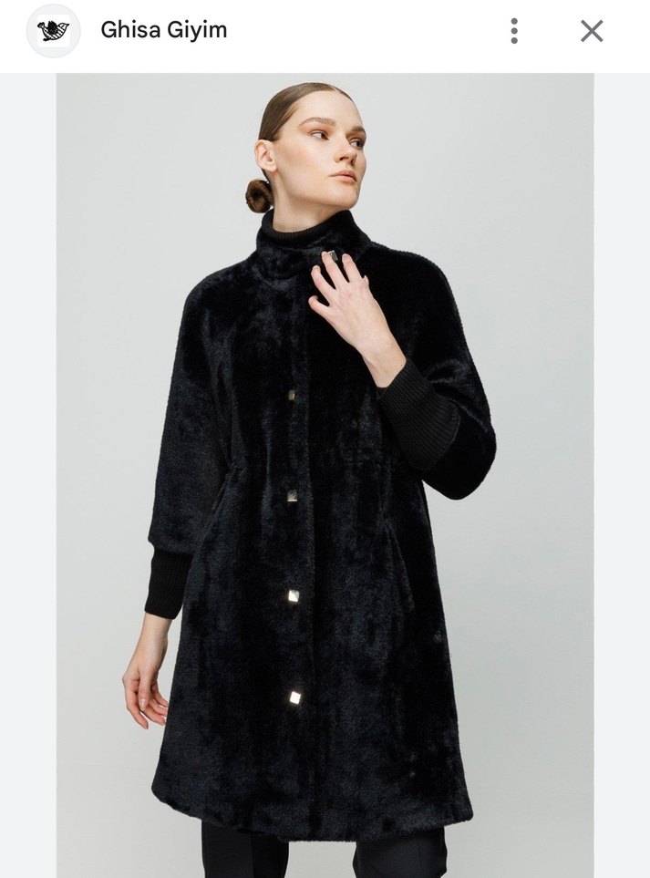 Yeni ve etiketlidir. İki koltuk altı arası 51cm. Boy 95cm. Kol genişliği 23cm. Çok şık kolları ribanalı lüks kaban belinde içten sıkmalı lastiği vardır