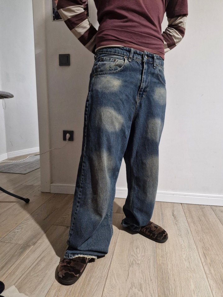 Desen içermeyen yıkama detaylı denim jean. Günlük kullanım için rahat ve şık bir sokak stili sunar. Modelinde cepler ve paçalarda hafif yırtık efekti vardır. M beden