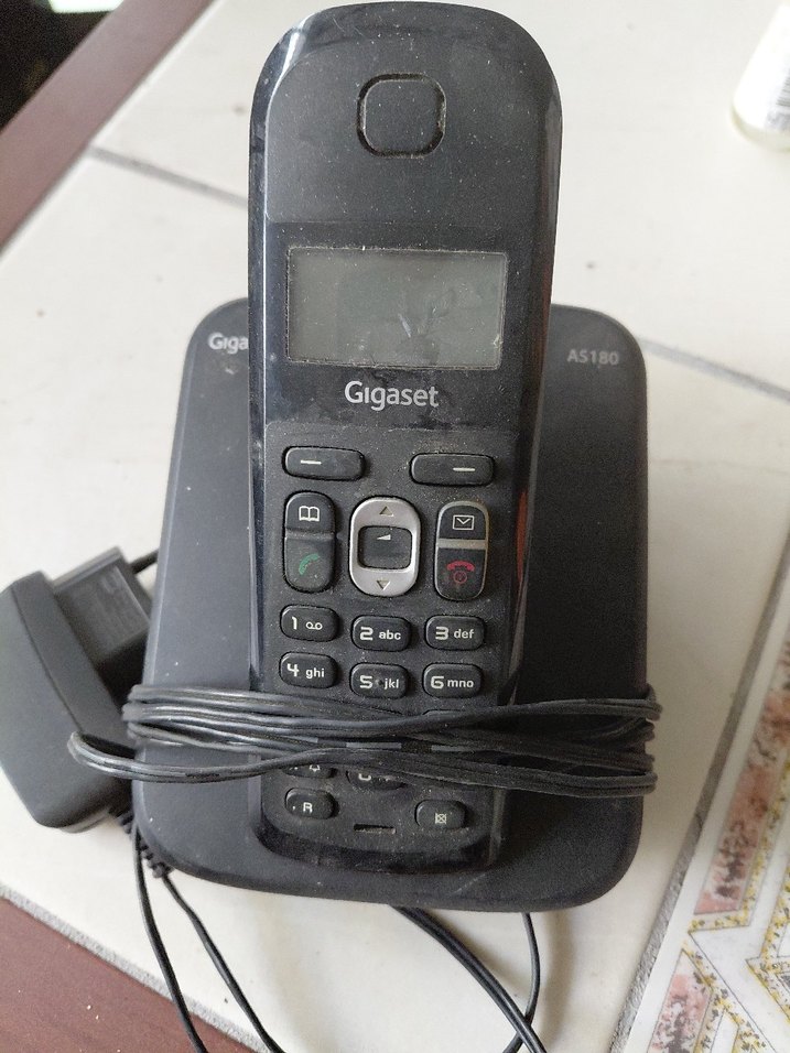 Gigaset AS180 siyah kablosuz telefon, küçük ekran ve temel tuş takımı ile kolay kullanım sunar. Şarj ünitesi ve adaptör dahildir.