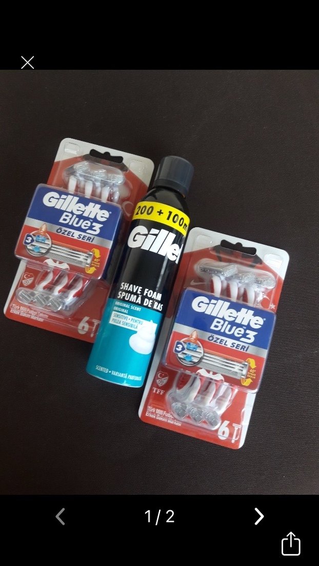 Gillette Blue3 renkli ambalajda, her pakette altı adet tıraş bıçağı içerir. Sette 200+100 ml Gillette tıraş köpüğü bulunur, pürüzsüz tıraş sağlar.