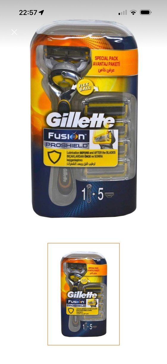 Gillette Fusion ProShield tıraş makinesi seti, bir sap ve beş parlak sarı yedek bıçak içerir. Bıçak öncesi ve sonrası yağlama özelliği ile pürüzsüz tıraş sağlar.