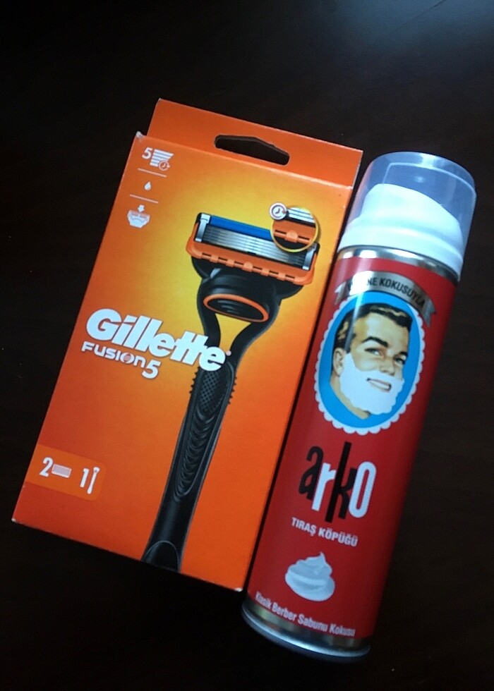 1 paket gillette fusion 5 traş mak. paket içeriğinde 1 mak.(aparat)+2 adet yedek bıçak vardır.1 adet arko traş köpüğü 200ml.orijinal sıfır ürün.görseldekilerin hepsi birlikte.