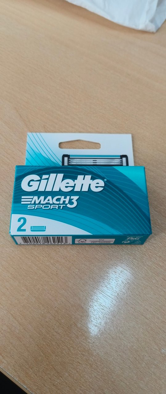 Gillette Mach3 Sport tıraş bıçağı yedeği, parlak bej ambalajda, iki adet bıçak kartuşu ile birlikte gelir.