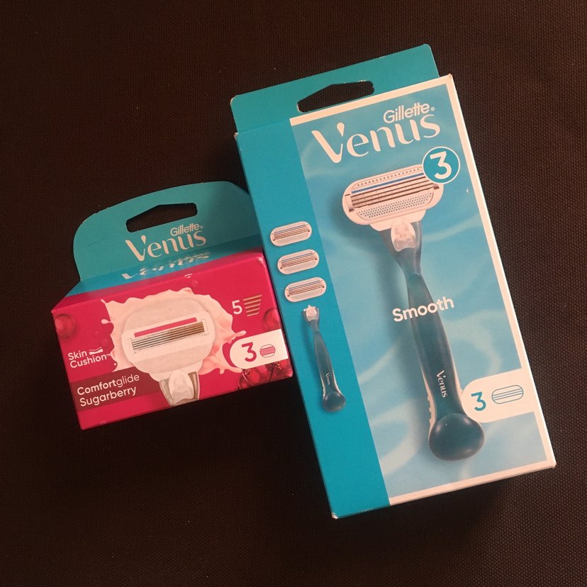 Gillette Venus 3 bıçaklı jilet ve 5 adet pürüzsüz yedek bıçak içerir. Rahat kayma ve şeker üzümü kokusu vardır. Parlak pembe tasarım. ✨orijinal sıfır ürün