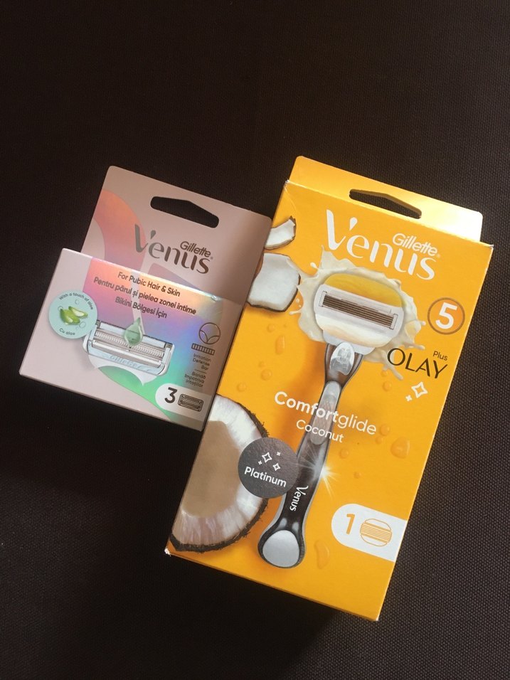 Gillette Venus tıraş makinesi, hindistancevizi kokulu nemlendirici şeritli ve Platinum bıçaklı. 1 makine ve hassas cilt için 3 yedek başlık içerir. orijinal sıfır ürün