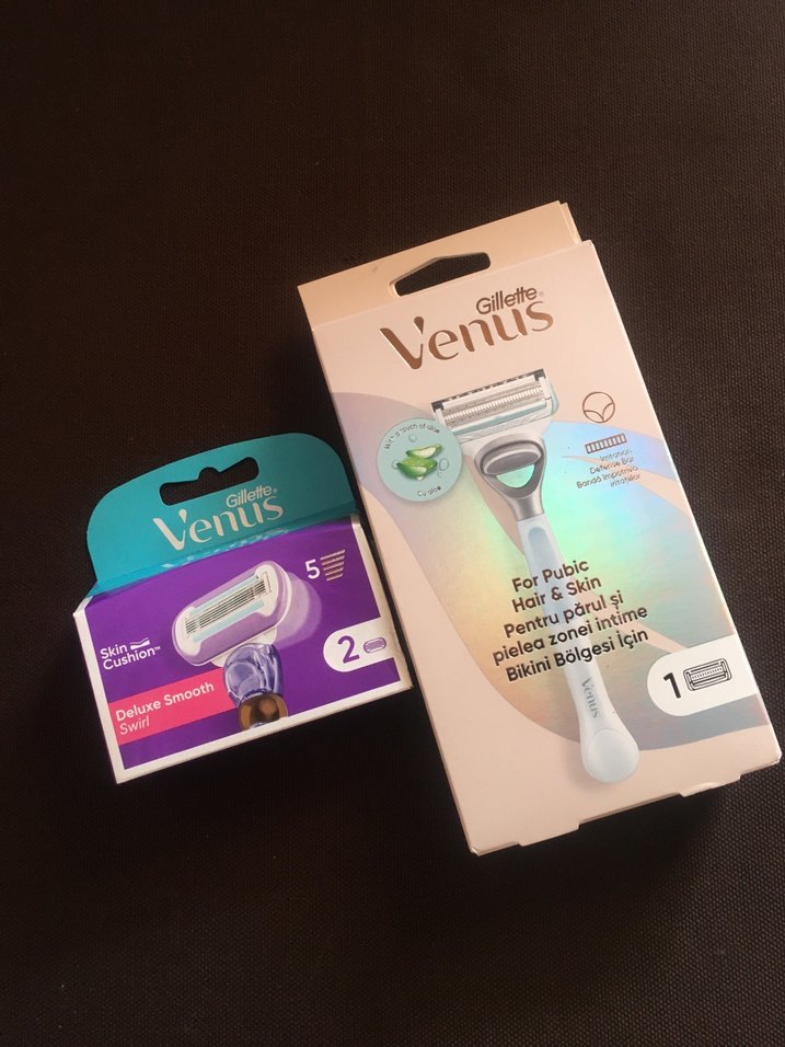 Gillette Venus parlak beyaz saplı erkek tıraş bıçağı ve iki adet yedek bıçak. Kasık kılları ve cilt için pürüzsüz tıraş sağlar. ✨orijinal sıfır ürün