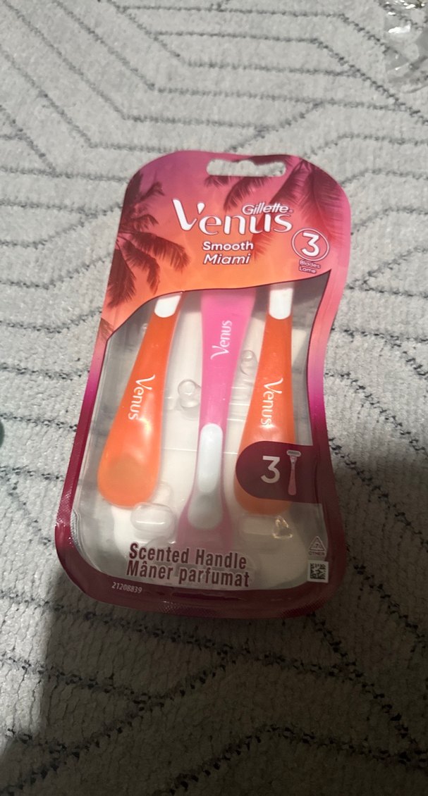 Gillette Venus Smooth Miami 3'lü tıraş bıçağı seti, pastel pembe ve turuncu kokulu saplı bıçaklar içerir. Pürüzsüz tıraş sağlar.