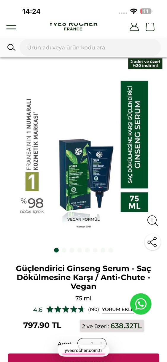 %98 doğal içerikli vegan ginseng serumu, saç dökülmesini önlemeye yardımcı olur ve saçı güçlendirir. 75 ml.