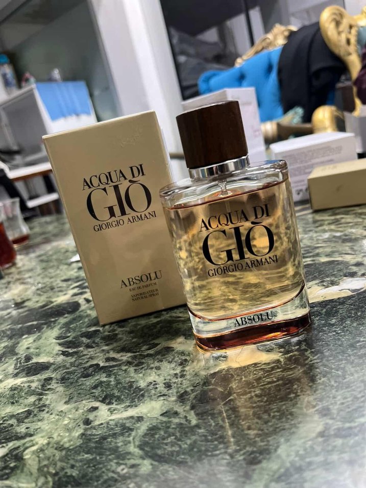 Giorgio Armani Acqua Di Giò Absolu, parlak altın tonlu, gösterişli ve karşı kültür tarzında erkek parfümüdür. Şeffaf şişede, ahşap kapaklıdır.
