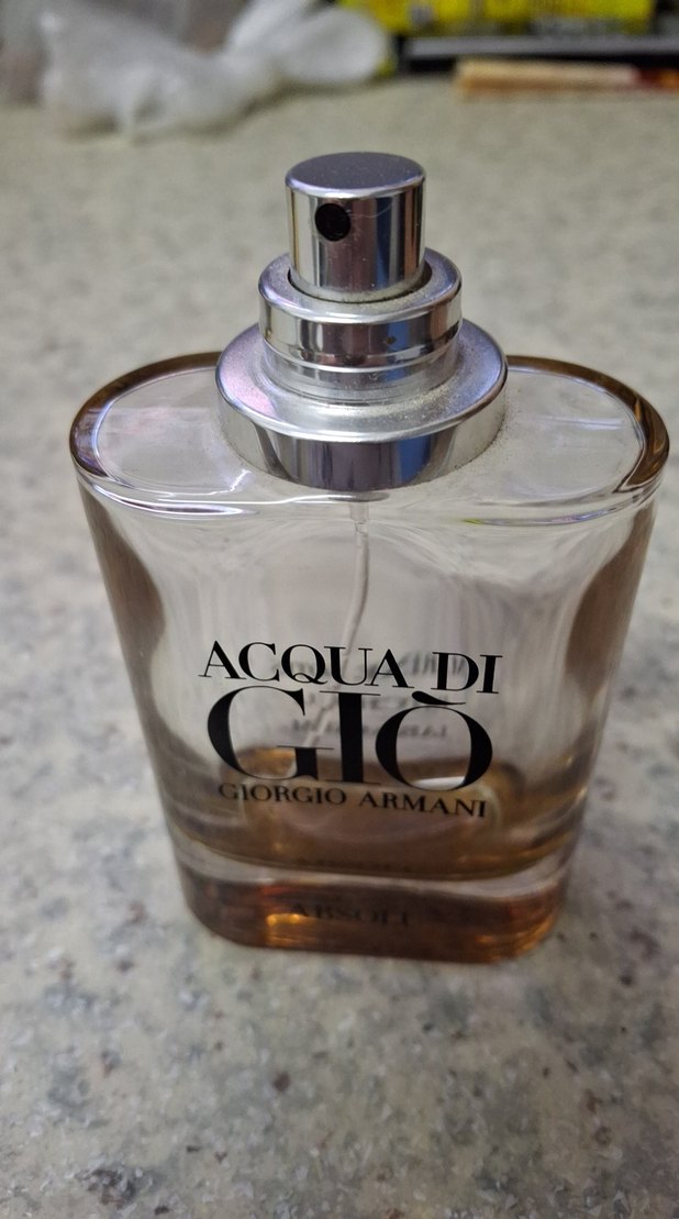 Giorgio Armani Acqua di Giò, klasik ve sofistike bir koku sunan bej-gri tonlarında erkek boş parfüm şişesi.