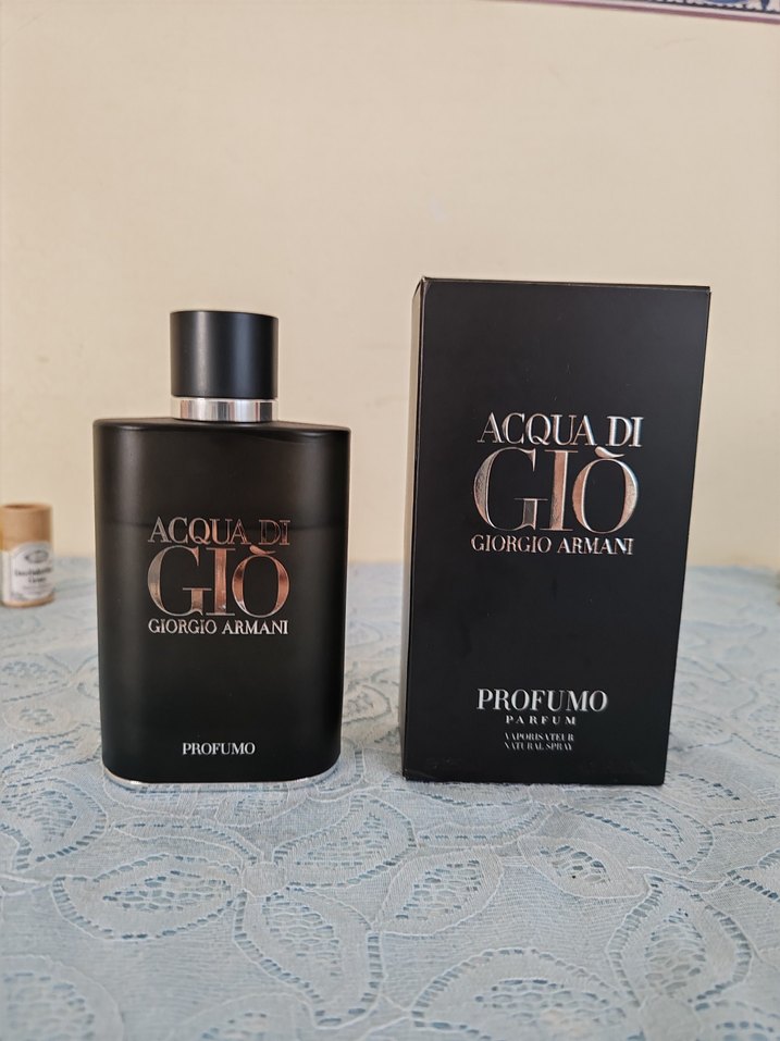 Giorgio Armani Acqua di Giò Profumo, koyu siyah şişede modern klasik erkek parfümü, gösterişli ve yoğun koku sunar.