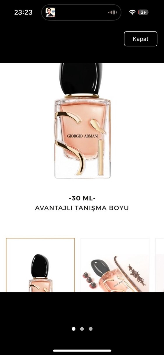 Ambalajlı orijinal Giorgio Armani kadın parfümü, 30 ml şişede şık tasarım ve zarif koku sunar. Kullanımı pratik boyutta.
