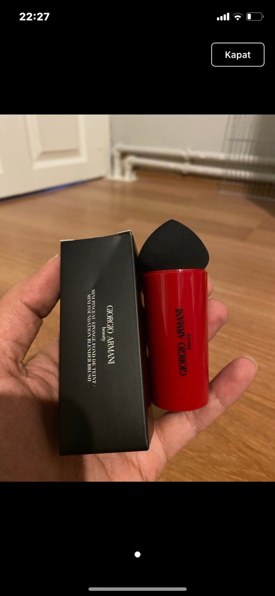 Giorgio Armani markalı, koyu renk süngeri ve canlı kırmızı sapıyla makyajda pürüzsüz uygulama sağlar. Orijinal armani makyaj süngeri.