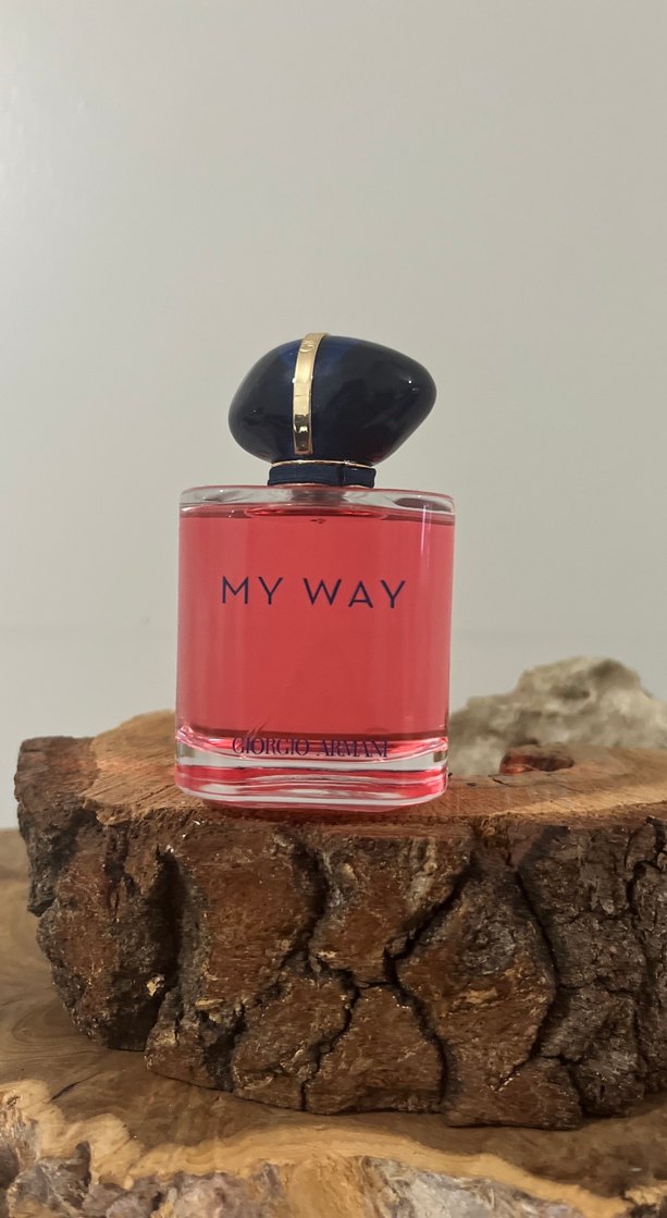 Giorgio Armani My Way kadın parfümü, pembe renkte bir sıvı ve koyu mavi kapaklı şeffaf şişede sunulmaktadır. 90 milim orijinal iade garantili