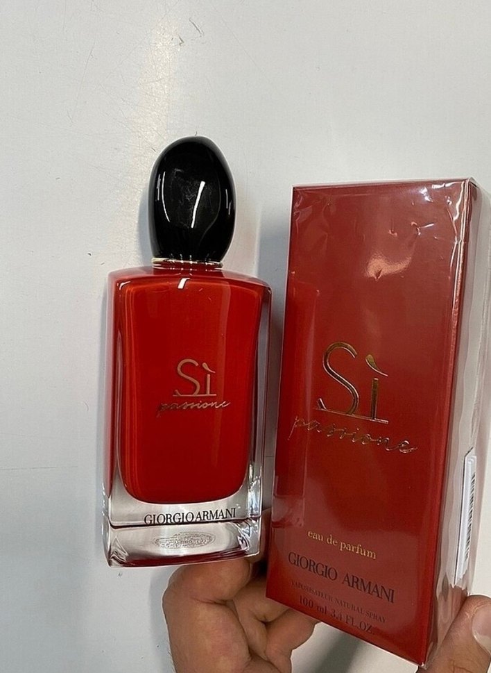 Giorgio Armani Si Passione kadın parfümü, 100 ml kırmızı şişede, siyah kapaklı, eau de parfum.