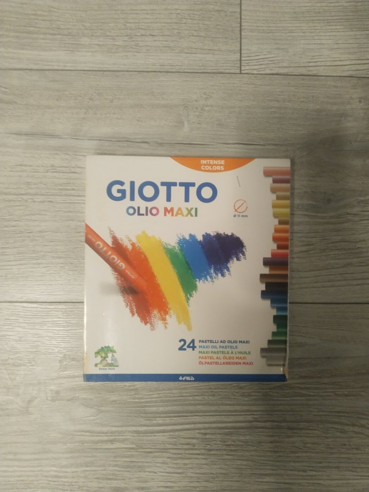 Giotto Olio Maxi 24 renk canlı yağlı pastel, pürüzsüz ve yoğun renk sağlar. Canlı tonlarıyla boyama ve çizim için uygundur.