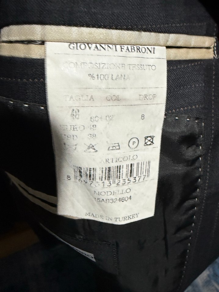 Giovanni Fabroni markalı %100 yün kumaştan, bej renkte, Paris sokak modasını yansıtan erkek ceketi. Klasik kesim ve bakım talimatları içerir.