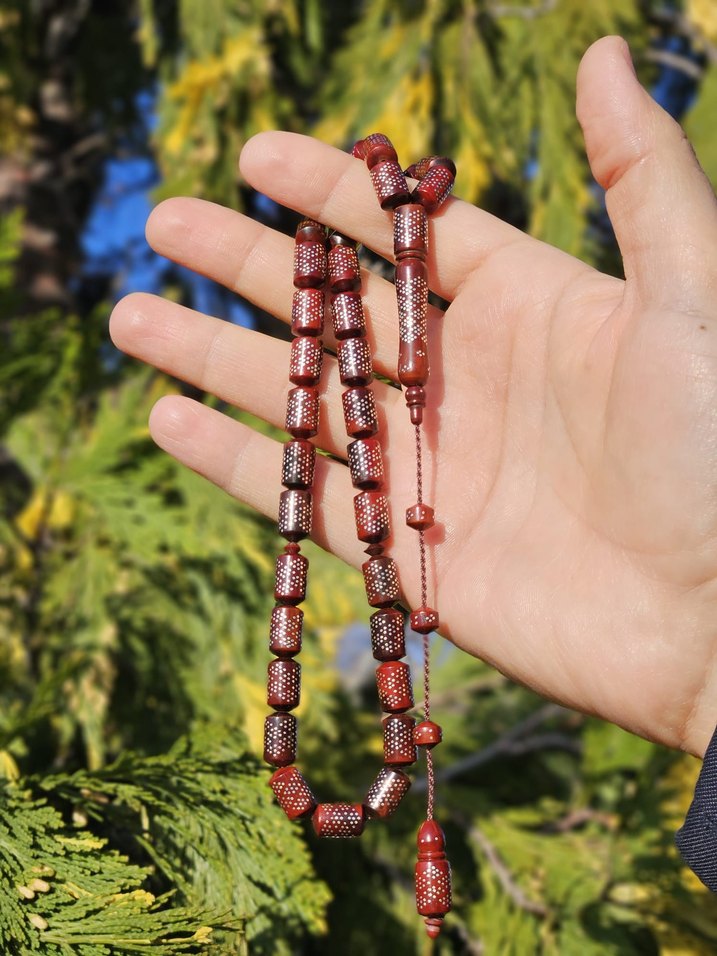 • Malzeme: Orijinal kuka ağacı üzeri gümüş çakım • Ölçü: 8x12 mm • Çekim: Gırtlak dolusu gümüş çakım • İşçilik: Kusursuz ve özenli el işçiliği • Tüm detaylar uyumlu ve kaliteli işçilik • Tasarım: Klasik ve asil görünüm, koleksiyonluk parça • Durum: Temiz, sorunsuz, kullanıma ve koleksiyona hazır • Genel Tanım: Görselde görüldüğü gibi son derece şık, dengeli dizime sahip, göz alıcı ve özel bir kuka tesbih Ciddi alıcılar için ideal, nadide bir parçadır. Koleksiyonunuza değer katacak bir parçadır.