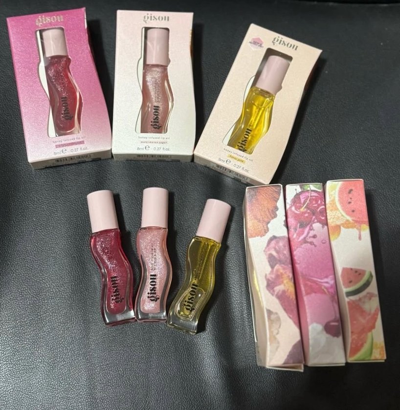 Gison markasının pastel pembe ve sarı tonlarında dudak parlatıcıları, canlı renkler ve parlak bir görünüm sunar.