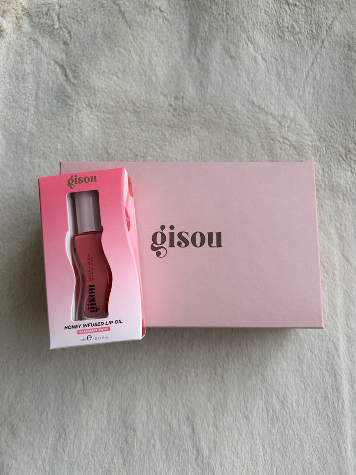 Gisou markasına ait, bal özü içeren pastel pembe renkte dudak parlatıcısı, parlak ve besleyici bir görünüm sağlar. ✨ kutu görsel amaçlıdır