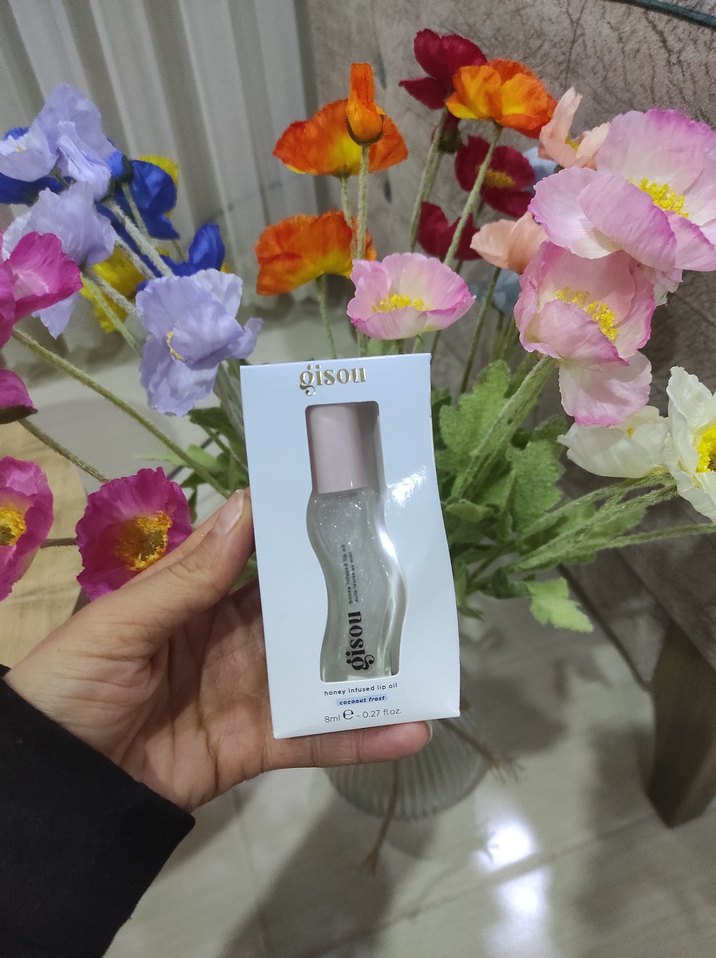 Gisou markasına ait beyaz pastel renkli dudak parlatıcısı, dudaklara parlak ve pürüzsüz bir görünüm kazandırır.