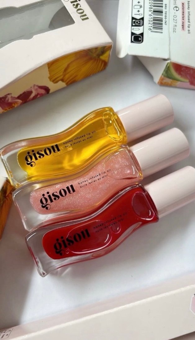 Gisou markasının parlak bitişli, sarı, pembe ve kırmızı tonlarında çok renkli dudak parlatıcıları. Dudaklara parlaklık katar.