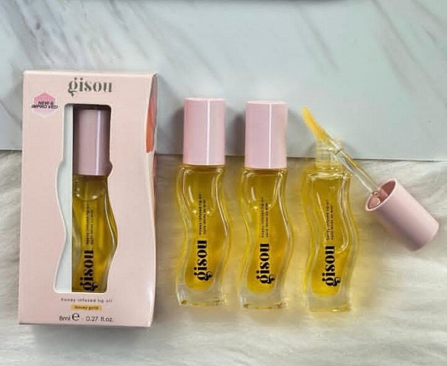 Pastel sarı renkte, pembe kapaklı ve dalgalı şişede sunulan parlak lip gloss. Üzerinde 'gisou' markası bulunur.