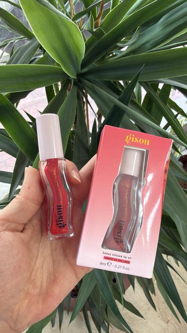 Gisou markasına ait, bal özü içeren parlak pembe dudak parlatıcısı, 8 ml hacmindedir.