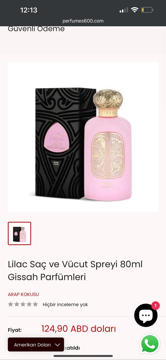 Gissah Lilac saç ve vücut spreyi, 80ml şişede hafif çiçeksi bir koku sunar, saç ve cildi ferahlatmak için uygundur.
