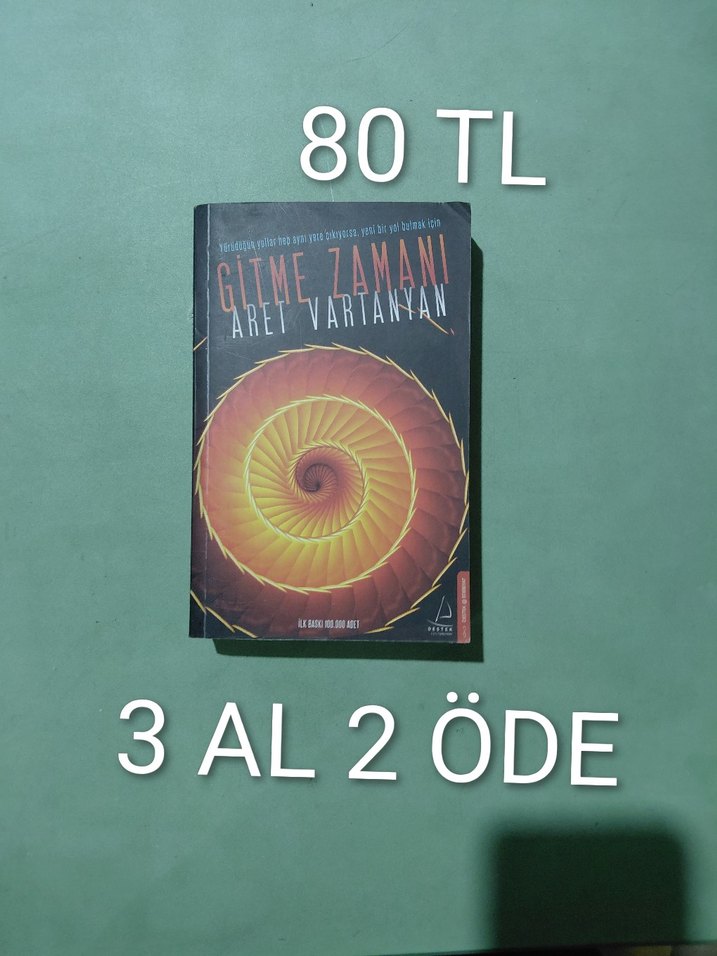 Aret Vartanyan'ın "Gitme Zamanı" adlı romanı, kapakta dikkat çekici bir spiral tasarıma sahip. 3 al 2 öde kampanyasıyla, fiyatı 80 TL.