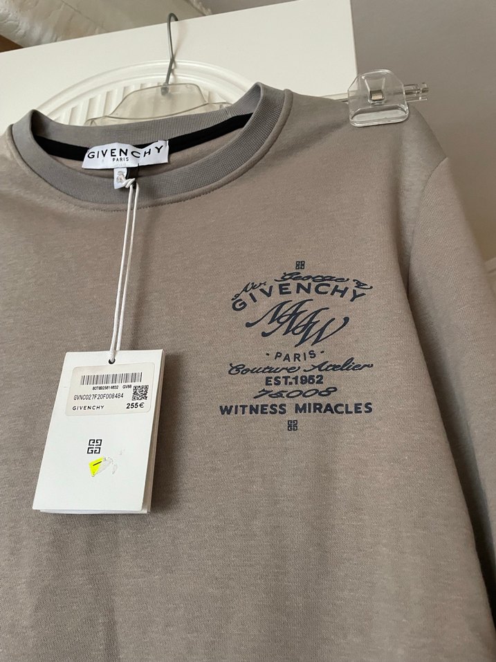 Givenchy marka gri renkli, baskılı, uzun kollu ve yuvarlak yakalı erkek sweatshirtü. Keten kumaştan, rahat kesimli, günlük şıklık sunar. İki kolası 50 uzunluk 70