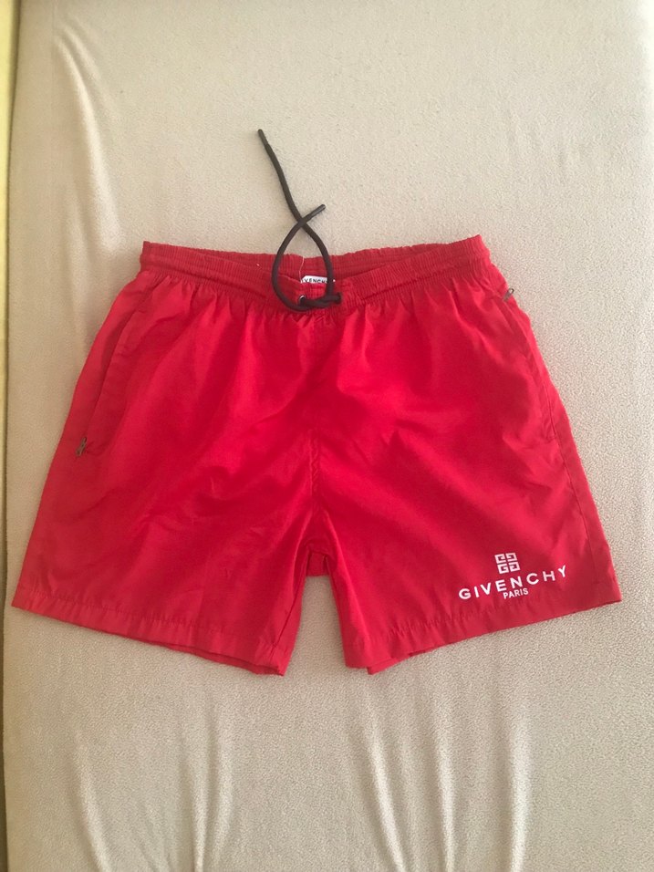 Parlak kırmızı renkli, mini boy ve fitted kesim Givenchy erkek mayo. Düz tasarımı ve belden bağlamalı yapısıyla plajda dikkat çeker.