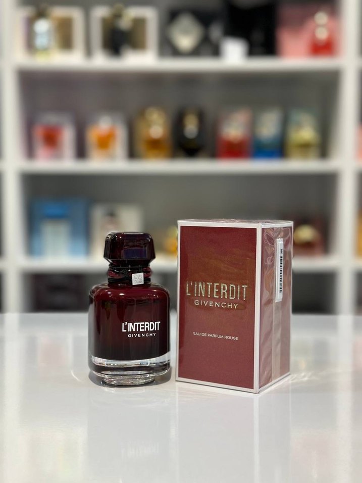 Givenchy L'Interdit, koyu kırmızı şişede sunulan kadın parfümüdür, zarif bir koku deneyimi sunar.