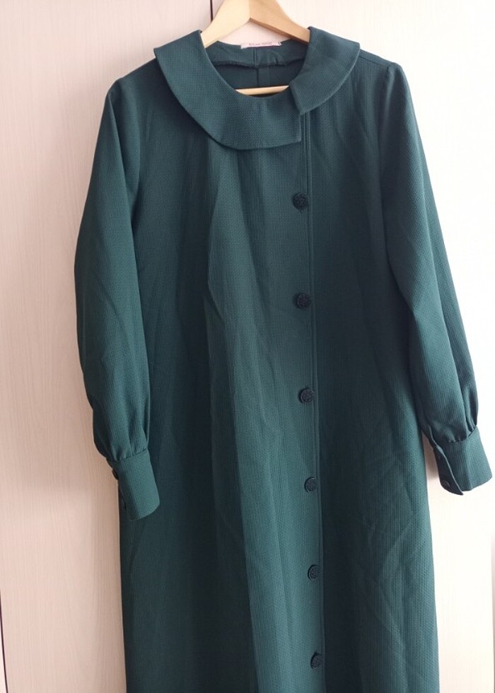Özel dikimdir bir iki kez kullanılmıştır tertemiz sıkıntısız durumdadır katlı şekilde kaldirdigim için kumaşı kırışık duruyor koyu zümrüt yeşili renginde 42 44 bedene uygundur ara mevsimlere uygun kalınlıktadir düğmeleri yandan kapamalidir