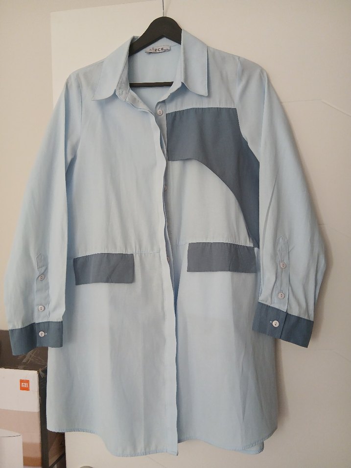 GİZCE Düğmeli Mavi Uzun Kadın Gömlek