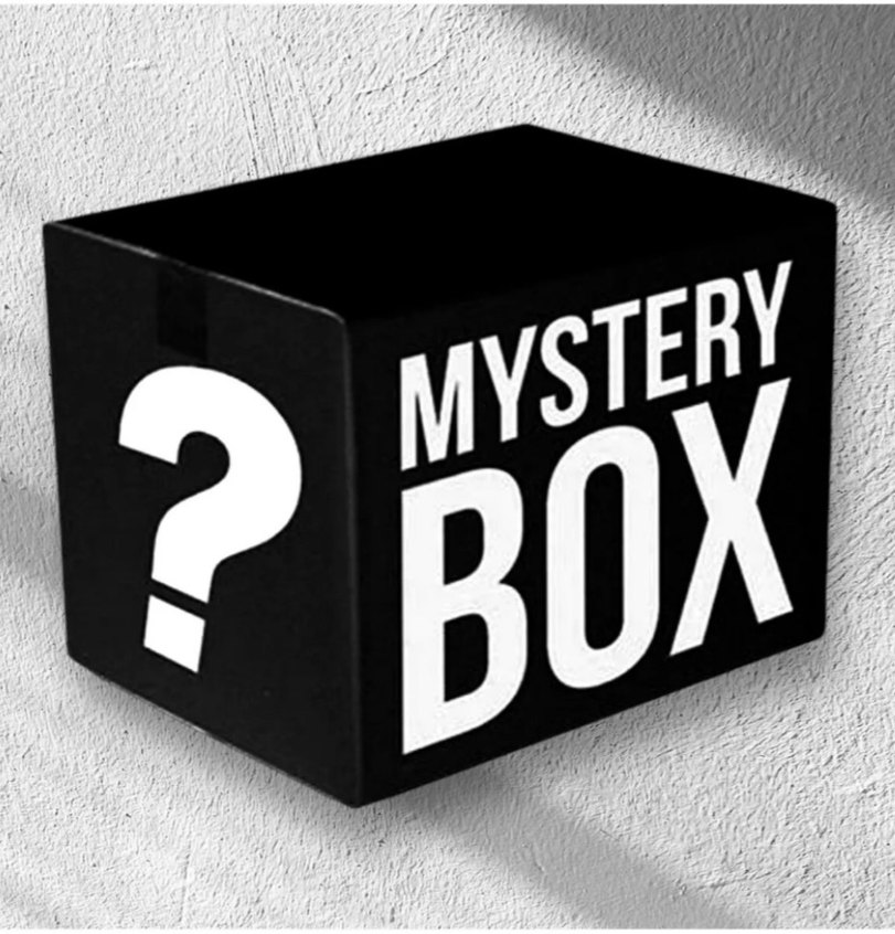 Gençler için siyah plastikten yapılmış, üzerinde büyük beyaz harflerle "MYSTERY BOX" ve soru işareti bulunan gizem kutusu.