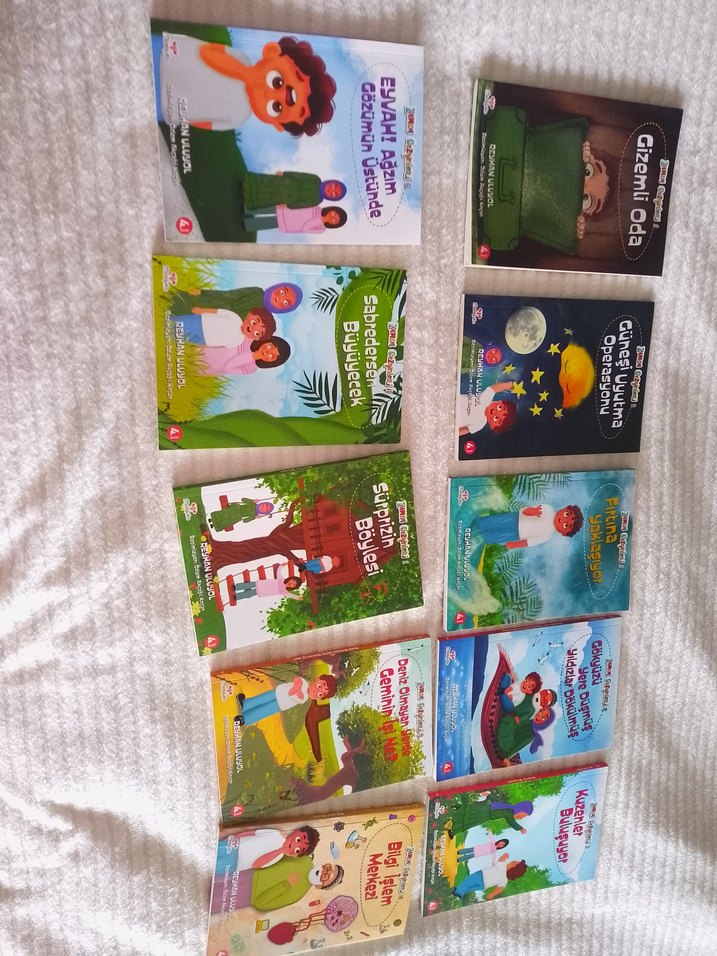 Renkli çizimlere ve sade metinlere sahip 'Gizemli Od' dahil çocuk hikayeleri kitabı seti.