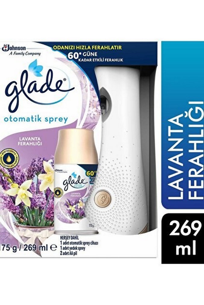 Glade otomatik sprey lavanta kokusuyla 60 güne kadar ferahlık sağlar. 1 otomatik sprey cihazı ve 1 adet 269 ml yedek sprey içerir.