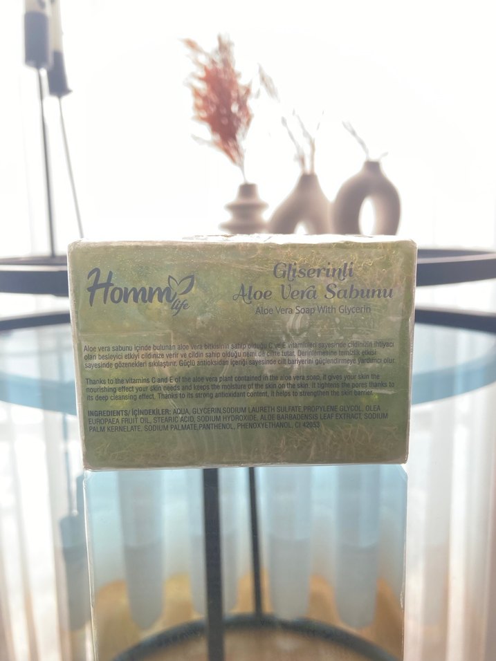Gliserin ve aloe vera içeren, cildi nazikçe temizleyen ve nemlendiren sabun.