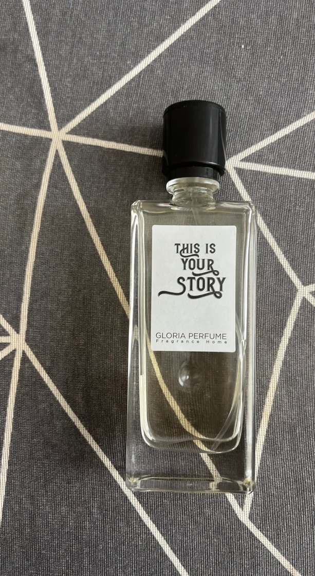 Gloria Perfume, üzerinde 'This is Your Story' yazan siyah kapaklı şeffaf cam şişede erkek parfümüdür. Fahrenheit %70 Dolu