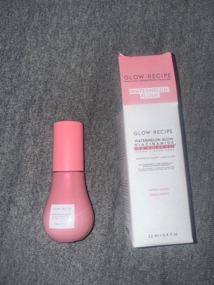 Glow Recipe Watermelon Flush allık, niasinamid içeren renkli serum formülü ile 12ml pastel pembe tonunda parlaklık sağlar.