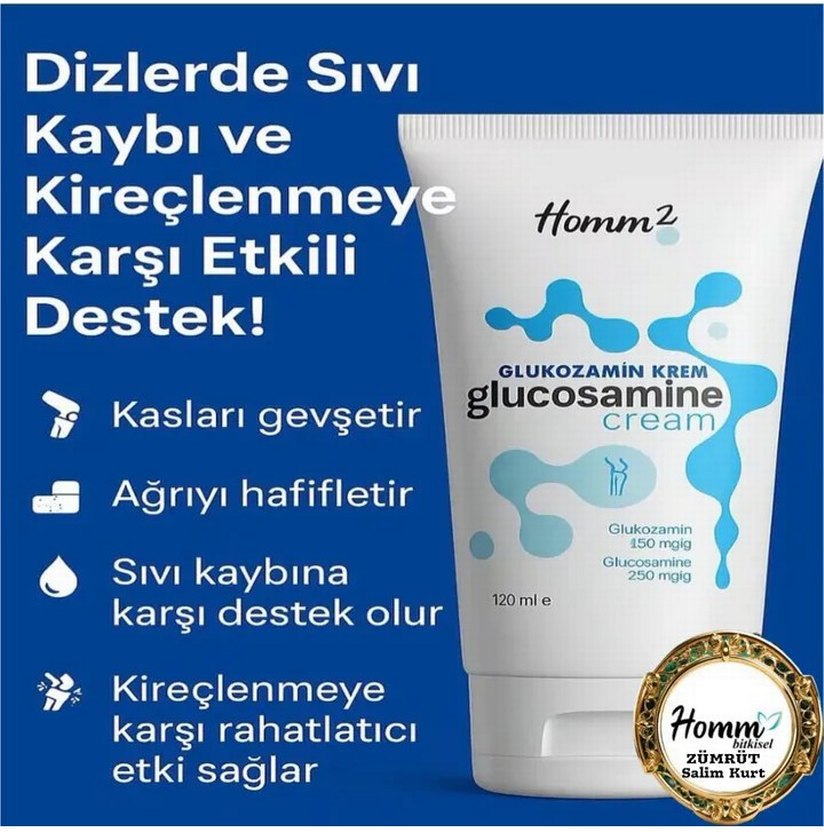Glukozamin krem, kasları gevşetir, ağrıyı hafifletir, sıvı kaybına karşı destek olur ve kireçlenmeye karşı rahatlatıcı etki sağlar.