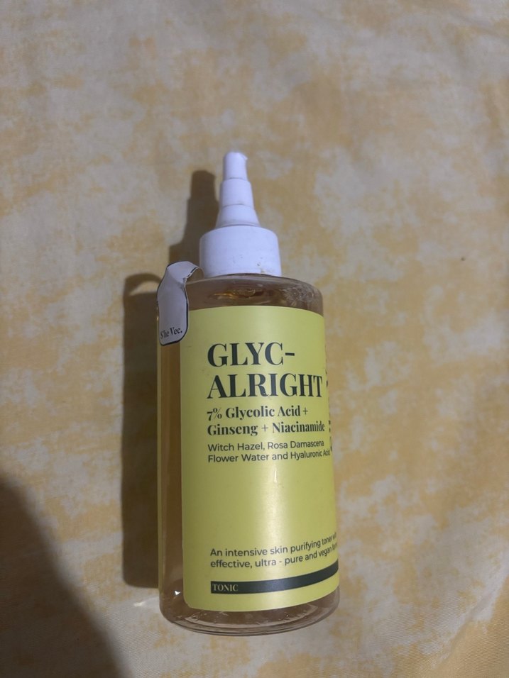 GLYC-ALRIGHT tonik, %7 glikolik asit, ginseng ve niasinamid içerir. Aynı zamanda cilt arındırıcı ve nemlendirici etkili cadı fındığı, gül suyu ve hyaluronik asit içerir.