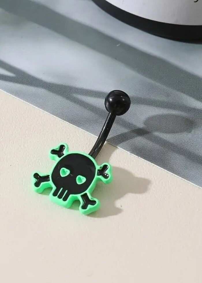 Neon yeşil detaylı siyah kafatası skull göbek #piercing Kapalı paketli ürün.