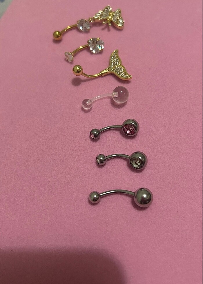 Hiç kullanılmamış göbek piercingleri Göbeğimi deldirmeyi düşündüğüm için almıştım ama deldirmeyeceğim için satıyorum. Hepsini cerrahi çelik diye satın aldım Tane fiyatıdır.