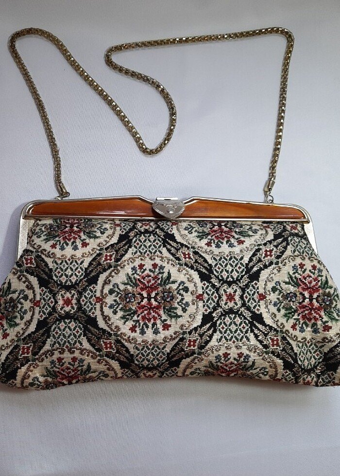 En az 30 yıllık vintage Goblen Çanta. İki kere kullanıldı. Fakat son resimde zamandan kaynaklanan hafif bir soyulma olmuş.
