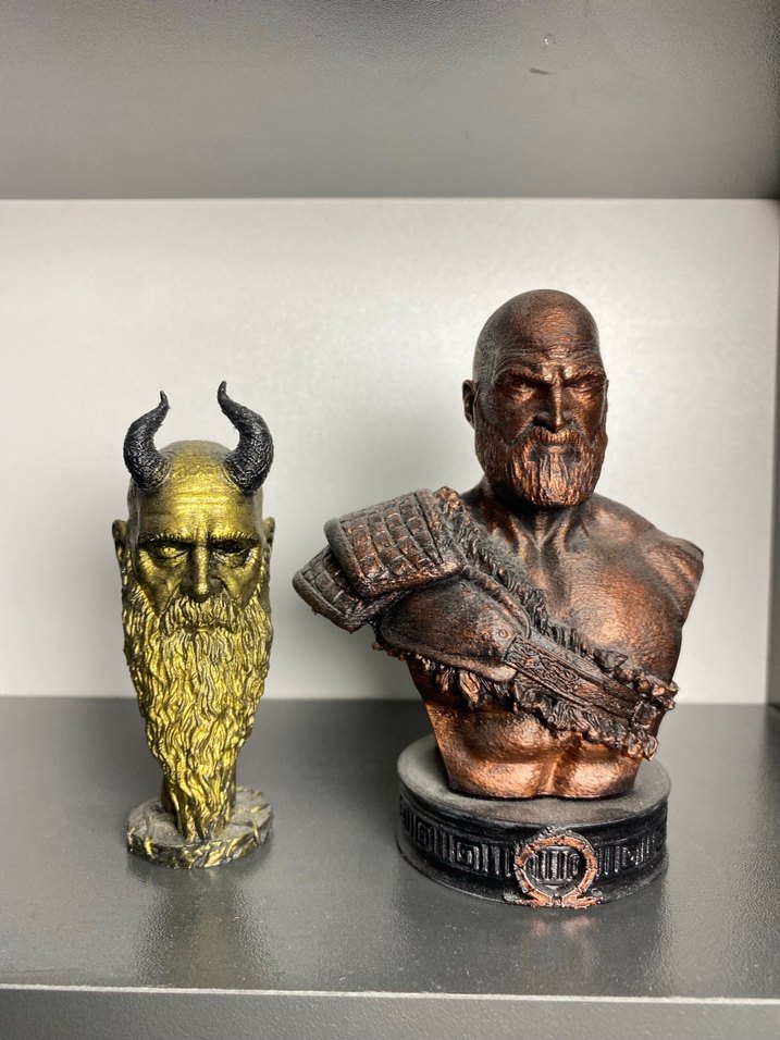 Koyu altın renkli, detaylı tasarıma sahip boynuzlu ve zırhlı savaşçı aksiyon figürleri. ️