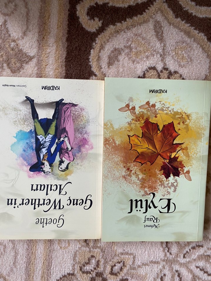 Goethe'nin "Genç Werther'in Acıları" ve "Genç Elyul" romanları, klasik edebi temalar ve sanat eseri kapak tasarımları içerir.