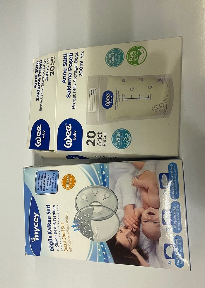 Göğüs kalkan seti ve 20 adet anne sütü saklama poşeti
